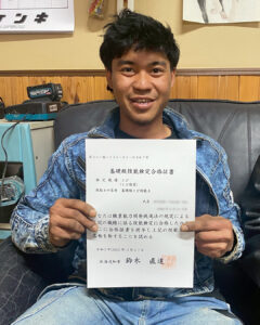 技能実習1年目の実習生が、見事基礎級試験に合格しました!